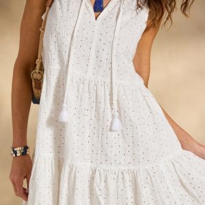 The fresh. new piece your denim collection needs this season: a tunic! Featuring modern. multi-tonal embroidery and frayed hems. our Adesina Tunic hits all the right notes. Sleeveless. round neck. back zip. Cotton. Machine wash. Imported. Sizes XXS (00). XS (0?C2). S (4?C6). M (8?C10). L (12?C14). XL (16?C18). XXL (20?C22). Approx. 37l.