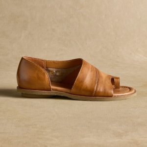 Supple leather swoops in graceful. asymmetrical lines. over extra cushioned. sublimely comfortable insoles and textured. rubber outsoles. Imported. Exclusive. Camel or navy. Euro whole sizes 36-41. 1 heel