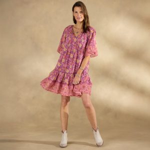 The ultimate one-and-done outfit. our Aisha Printed Dress is so effortless. you’re going to want one in every color and pattern! This gauzy knee-length popover features pretty pintucking. an all-over floral print with border details and a front tie with wooden beads. Cotton. Machine wash. Imported. Exclusive. Sizes XS (0-2). S (4-6). M (8-10). L (12-14). XL (16-18). XXL (20-22). Approx. 36l.