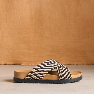 Five different intricately beaded designs form the straps of these brilliantly colored sandals. Back zipper with tassel. leather lining and insole. Leather. Imported. Whole sizes 36?C42. 36 (US 5). 37 (US 6). 38 (US 7). 39 (US 8). 40 (US 9). 41 (US 10). 42 (US 11).