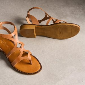 The dynamic design of these sandals is reminiscent of pathways in formal gardens. Studs wind around the insole and an adjustable ankle strap and cushioned insole add comfort. Leather. Italy. Exclusive. Whole sizes 36-41. 36 (US 5.5). 37 (US 6). 38 (US 7). 39 (US 8). 40 (US 8.5). 41 (US 9.5).