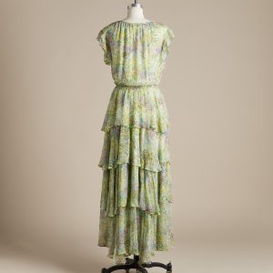There’s so much beautiful movement in our embroidered dress with dramatic. overlaying tiers. V-neck and ties. ruffled neckline and covered eyelet buttons. Fully lined. Cupro. Hand wash. Imported. Exclusive. Sizes XXS (00). XS (0 to 2). S (4 to 6). M (8 to 10). L (12 to 14). XL (16 to 18). Approx. 51-1/4L.