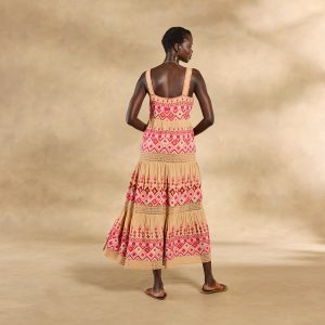 From spring days through summer nights and beyond. you’ll reach for our Garden Sunset Dress again and again! Sundown shades of pink. coral and yellow brighten a neutral background??with intricate all-over embroidery. lace insets throughout. decorative strap stitching and a center back zipper. Viscose/cotton/poly. Hand wash. Imported. Exclusive. Sizes XXS (00). XS (0?C2). S (4?C6). M (8?C10). L (12?C14). XL (16?C18). Approx. 49.5l.