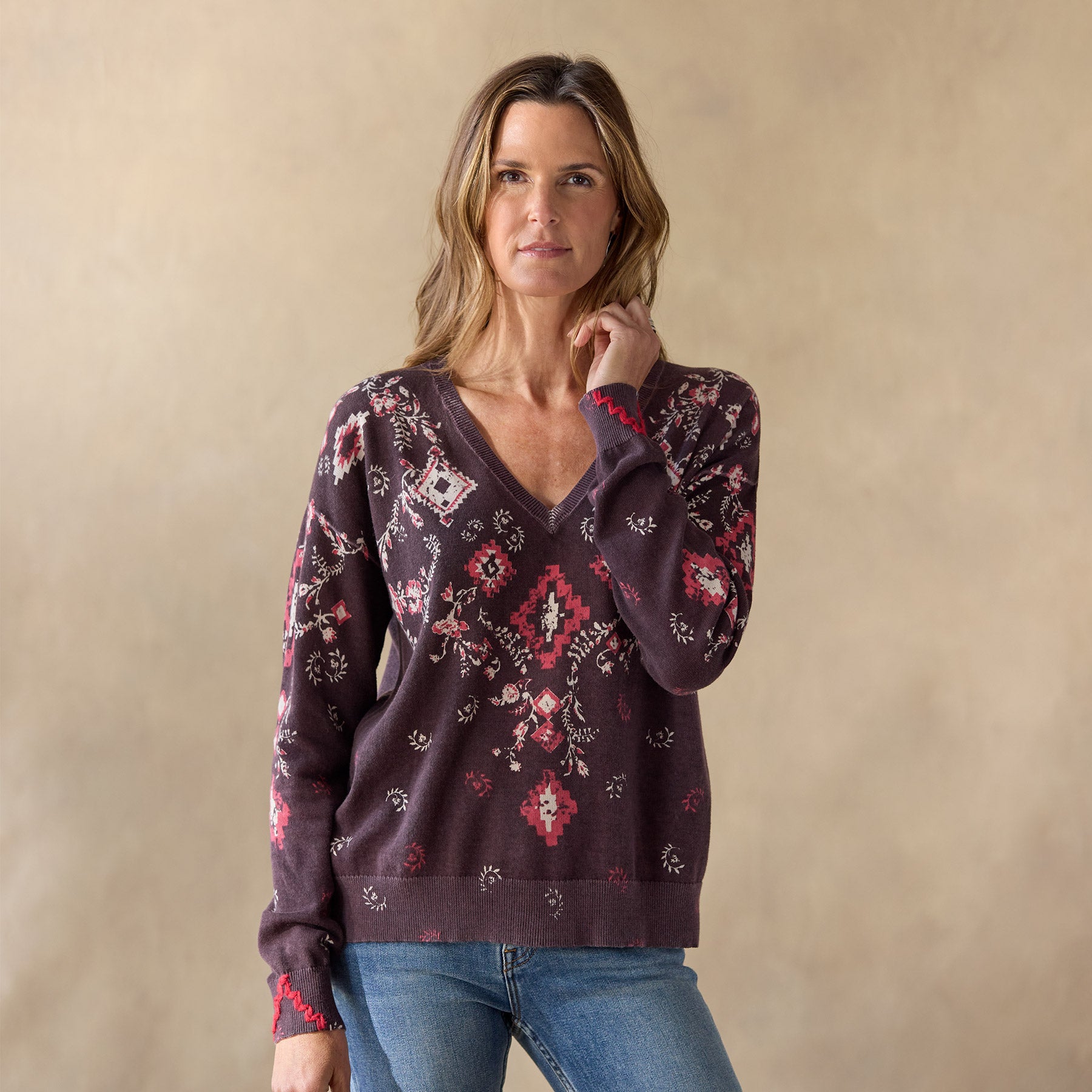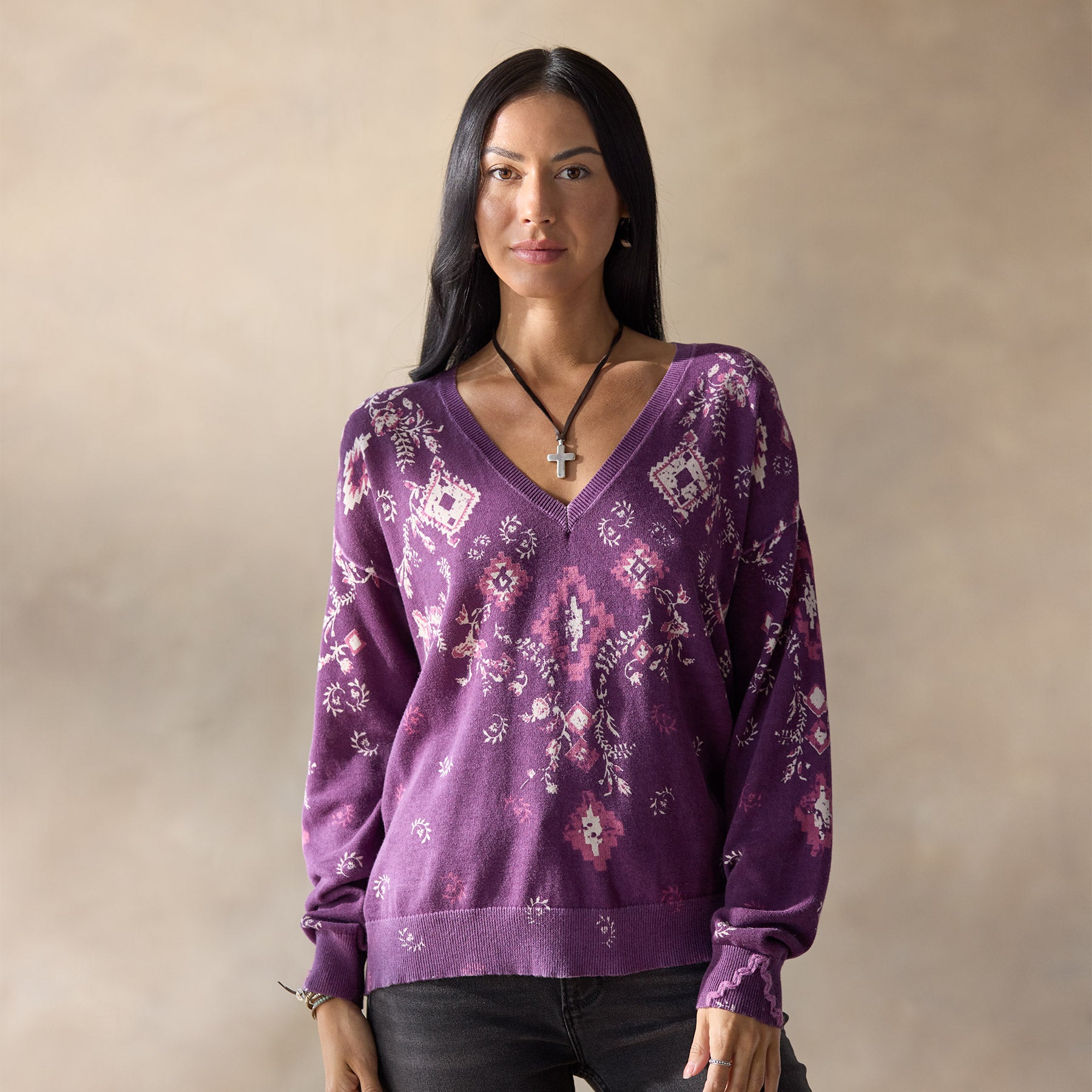 A new Sundance classic. with bandana/floral print front and back and hand-embroidered embellishment at the open V-neckline. Exposed seams. rib trim. relaxed fit. Cotton. Hand wash. Imported. Exclusive. Sizes XS (0?C2). S (4?C6). M (8?C10). L (12?C14). XL (16?C18). XXL (20?C22). Approx. 24l.