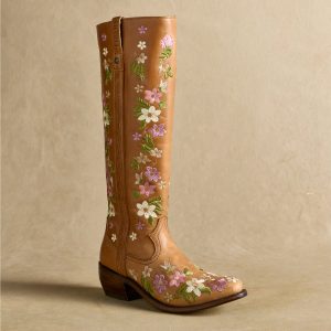 Nature lovers will rejoice over these handmade lead- and metal-free leather boots. adorned deliciously with intricately embroidered flowers that will cheer your day. Side zip. Imported. Exclusive. Whole and half sizes 6?C10. 11. 1.73 heel.