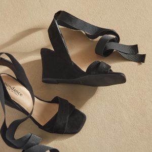 These handcrafted. wedge sandals have a distinctive silhouette with criss-cross front and can be secured with a suede ankle strap with gunmetal buckle or an included grosgrain ribbon. Suede. Italy. Exclusive. Whole sizes 36 (US 5.5). 37 (US 6). 38 (US 7). 39 (US 8). 40 (US 8.5). 41 (US 9.5). Approx. 2.25 heel.