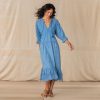 This distinctive party dress features a beautiful print. a V-neck in front and back. ruffled sleeves and asymmetric ruffled tiers. Full maxi length. Cotton. Machine wash. Imported. Sizes 2 to 16. Approx. 55-1/2L.