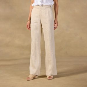 Meet our Renata Trousers: an easy. unexpected way to elevate your warm-weather wardrobe. We’ve paired light herringbone linen with a longer length and exquisite tailoring??including a flared leg and top-stitched details. Linen. Machine wash. Imported. Exclusive. Sizes 0?C14. 29 inseam.