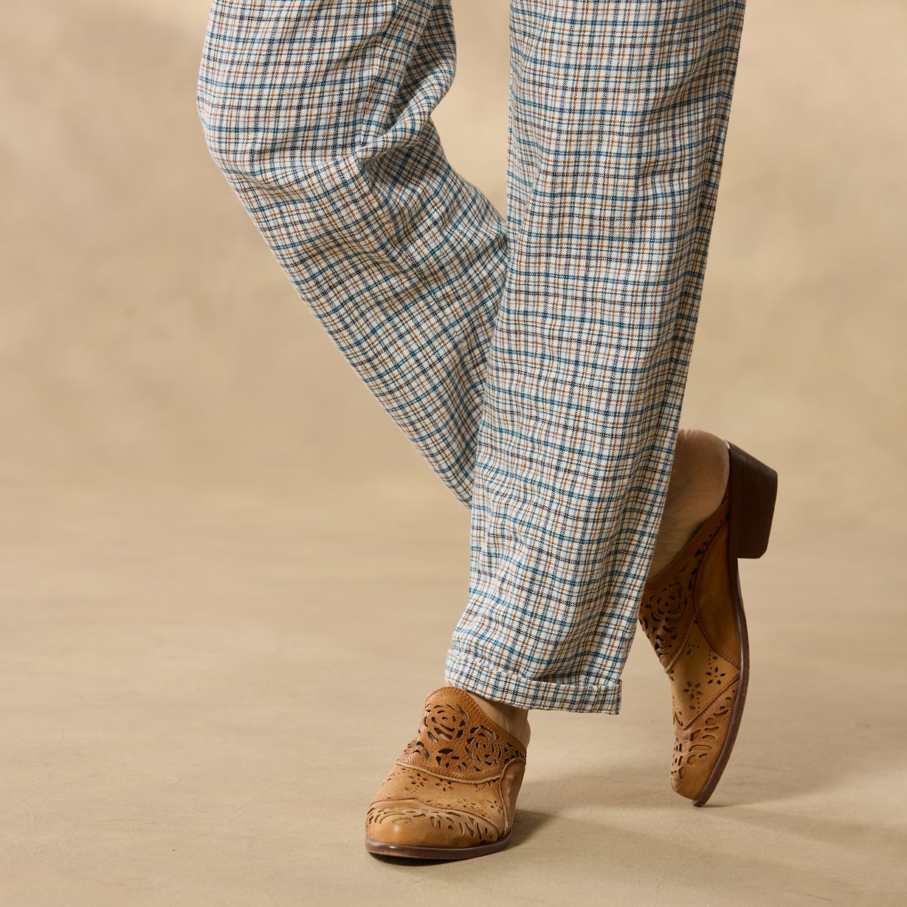 Just when you thought gingham couldn’t get ANY more easygoing. our Vivienne Pants entered the conversation. You’ll live in these pleated garment-dyed pants with a paper-bag waist and welt pockets in front and back. Cotton/linen. Machine wash. Imported. Exclusive. Sizes 0?C14. 26 inseam.